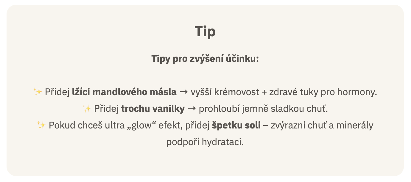 - 1 lžička maca prášku (volitelně – podpora libida)
